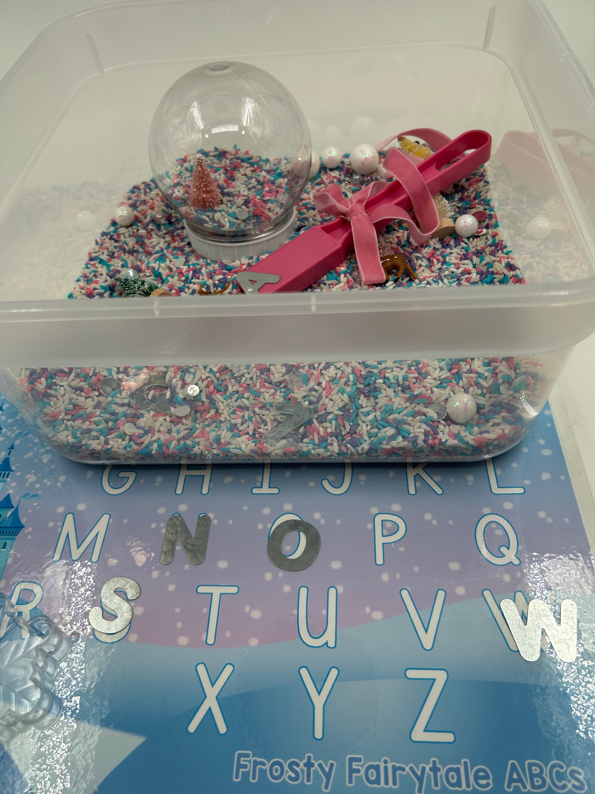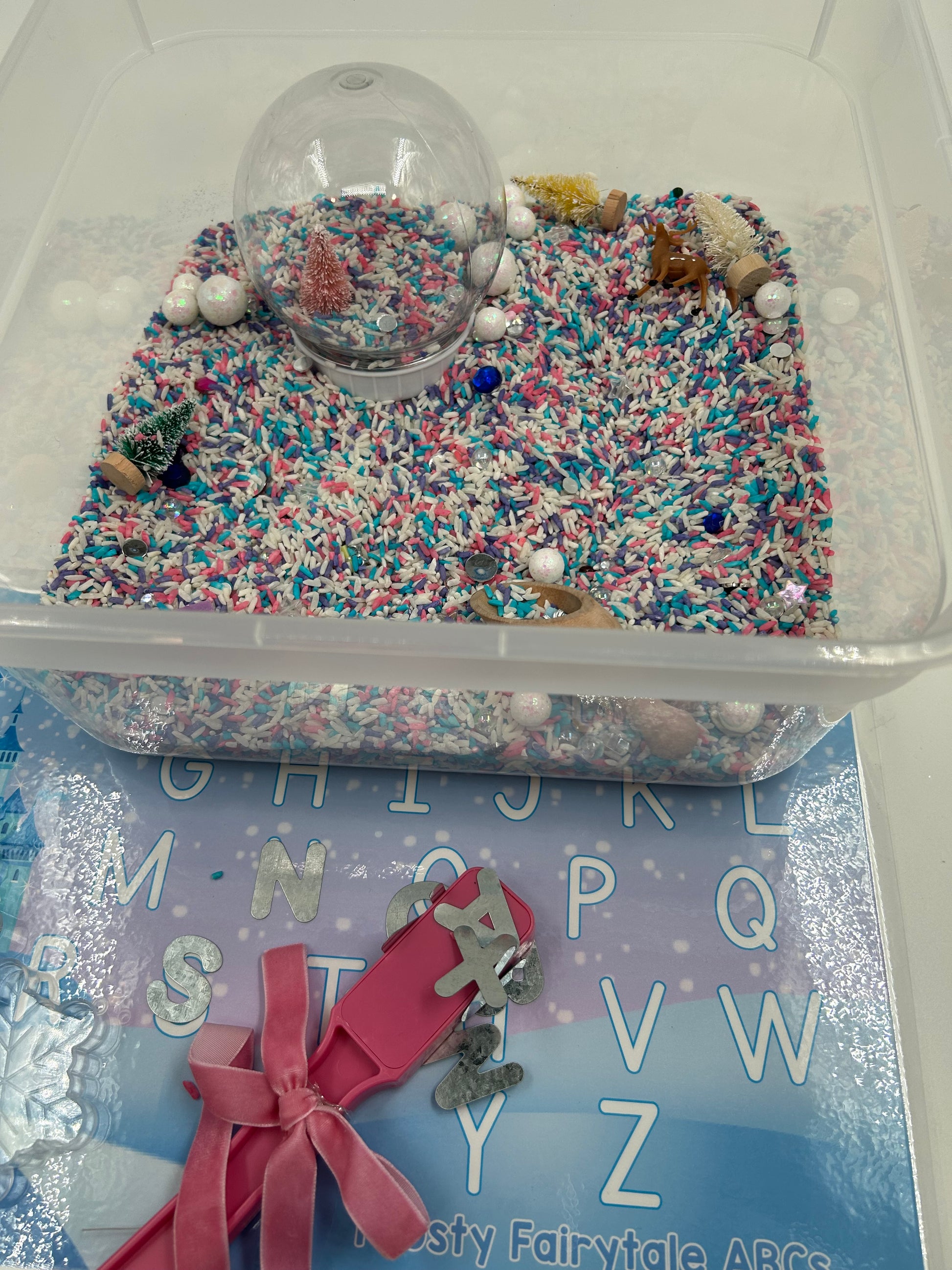 Perfect for winter-themed play, calming sensory exploration, or imaginative storytelling, the Frosty Fairytale Sensory Bin turns any day into a soft, sparkling adventure.
